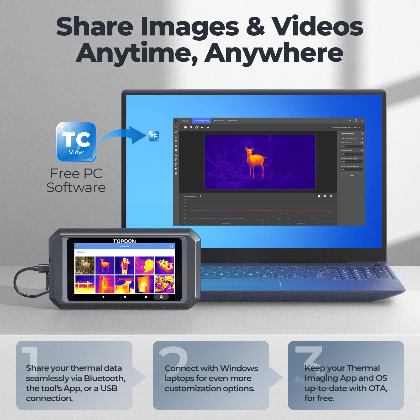 · Med TCView- programvaren installert, er TC003 fullt kompatibel med Windows bærbare datamaskiner. Ved å koble TC003 til en bærbar PC, kan brukere teste et bredere spekter av områder ved å bruke dimensjonsvalget (punkt, linje, overflate).